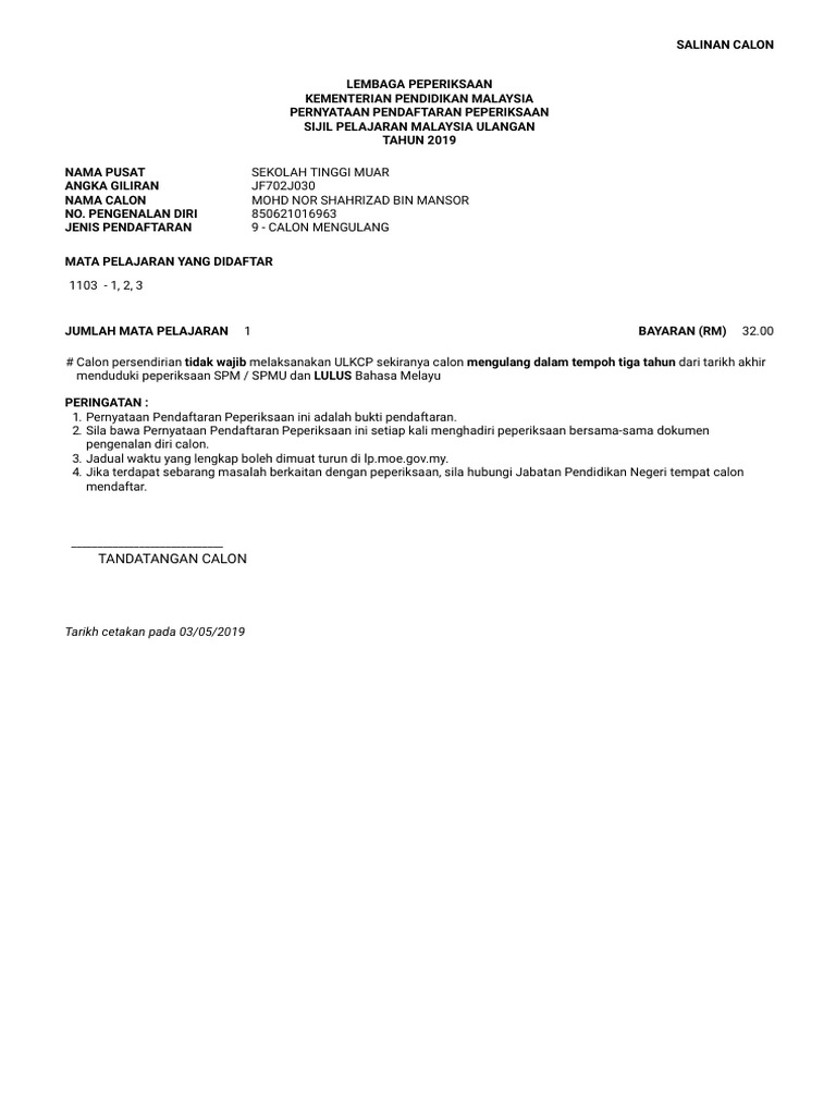 Manakala, pada sesi november 2019 akan diadakan sama seperti tarikh peperiksaan spm 2019. Klik di sini jika ingin juga mendaftar spm (november) untuk calon persendirian ===== translation in english: Berikut dikongsikan cara pendaftaran calon persendirian stpm 2021 buat rujukan anda. Nak menduduki peperiksaan spm ulangan? Sebarang permohonan lewat tidak akan dipertimbangkan dan sila layari portal rasmi kpm atau lembaga peperiksaan untuk mendaptkan maklumat pendaftaran yang rasmi dan tepat. March 4, 2020 by sektor peperiksaan. 242 panduan mengisi pos ekspress file size: Bagi calon spm 2020 yang ingin mengambil peperiksaan spm ulangan 2021 atau spm sebagai calon persendirian tahun 2021, pendaftaran akan dibuka bermula pada tarikh sama seperti di atas: Seperti mana setiap tahun akan dibuka dua kali peperiksaan spm ulangan bagi sesi jun dan november. Klik daftar calon mengulang untuk mendaftarkan diri. Majlis peperiksaan malaysia (mpm) yang ditubuhkan pada 1 februari 1980 di bawah akta majlis peperiksaan malaysia akta 225 ialah sebuah badan berkanun yang beroperasi di bawah naungan kementerian pelajaran malaysia. Proses pendaftaran spm persendirian & spmu 2020. Bagaimanakah untuk mendaftar spm calon persendirian