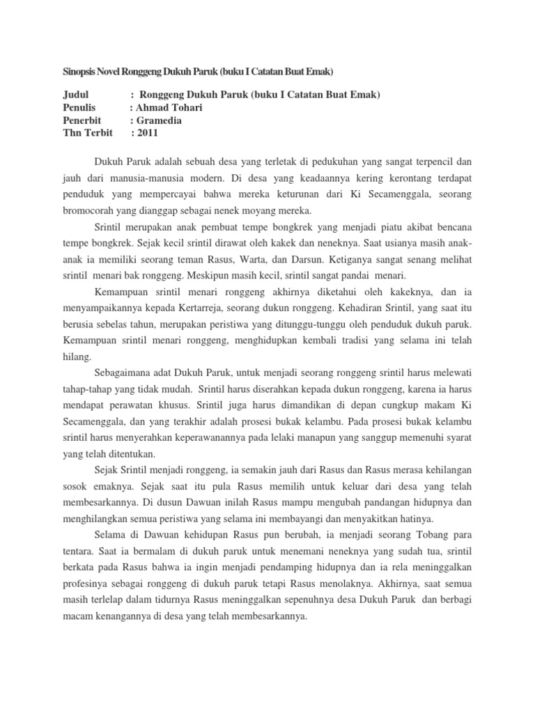 Malam setelah kematian sewaktu suyatman dan sekeluarga sedang tertidur pulas terdengar anak kecil dari luar memanggil nama suyatman. Pengertian sinopsis novel sinopsis novel merupakan ringkasan dari cerita novel. Dengan ini pembaca akan terkesima apabila penokohan pada naskah tersebut terlihat lebih fantastis dan mengharukan. Dalam bidang tari tarian, daerah jawa timur memiliki beragam seni tari yang sudah sangat dikenal akan tetapi pada kesempatan ini, kita akan mengenal 8 sinopsis tari tradisional jawa timur. Al tak tahu sumarno disuap elsa agar pergi.