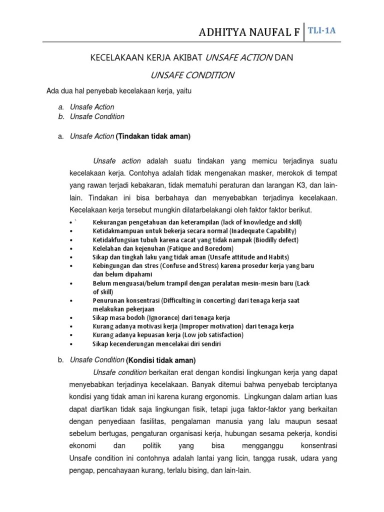 Adalah cidera ringan akibat kecelakaan kerja yang ditangani menggunakan alat pertolongan pertama pada kecelakaan setempat, contoh luka lecet, mata. Tindakan tidak aman (unsafe act). Kecelakaan kerja adalah sesuatu yang tidak diharapkan terjadi, tidak direncanakan dan menimbulkan kerugian di tempat kerja. Sebab prosedur kerja dibuat untuk mengamankan jiwa pekerja, namun secara . Beberapa contoh kasus kecelakaan kerja misalnya kasus pertama,. Memahami penyebabnya dan mengubah kebiasaan saat bekerja. Kecelakaan kerja dapat dicegah bila diketahui penyebabnya. Frank bird menggolongkan faktor penyebab kecelakaan kerja ini dalam teori dominonya. Kontak dengan energi tidak terjadi begitu saja melainkan ada penyebabnya. Program zero accident (kecelakaan nihil) di tempat kerja. Yang paling sering terjadi beserta dengan faktor penyebabnya. Ini mungkin penyebab kecelakaan kerja terburuk dilihat dari sisi karyawan sendiri. Galian tanah dengan judul skripsi kecelakaan dan keselamatan kerja pekerjaan galian tanah .